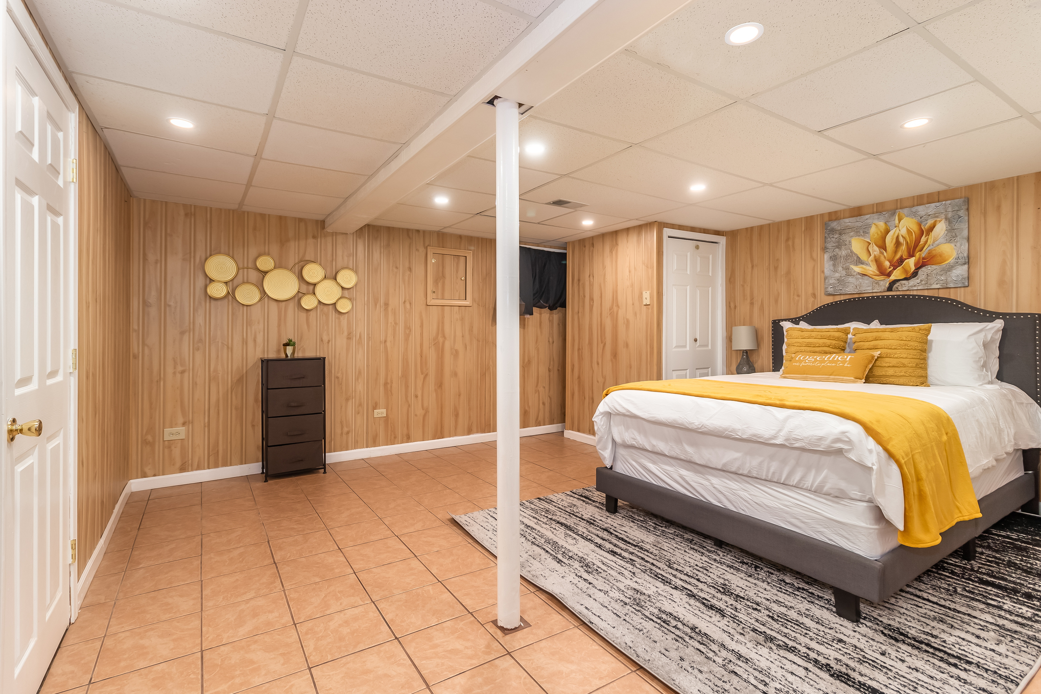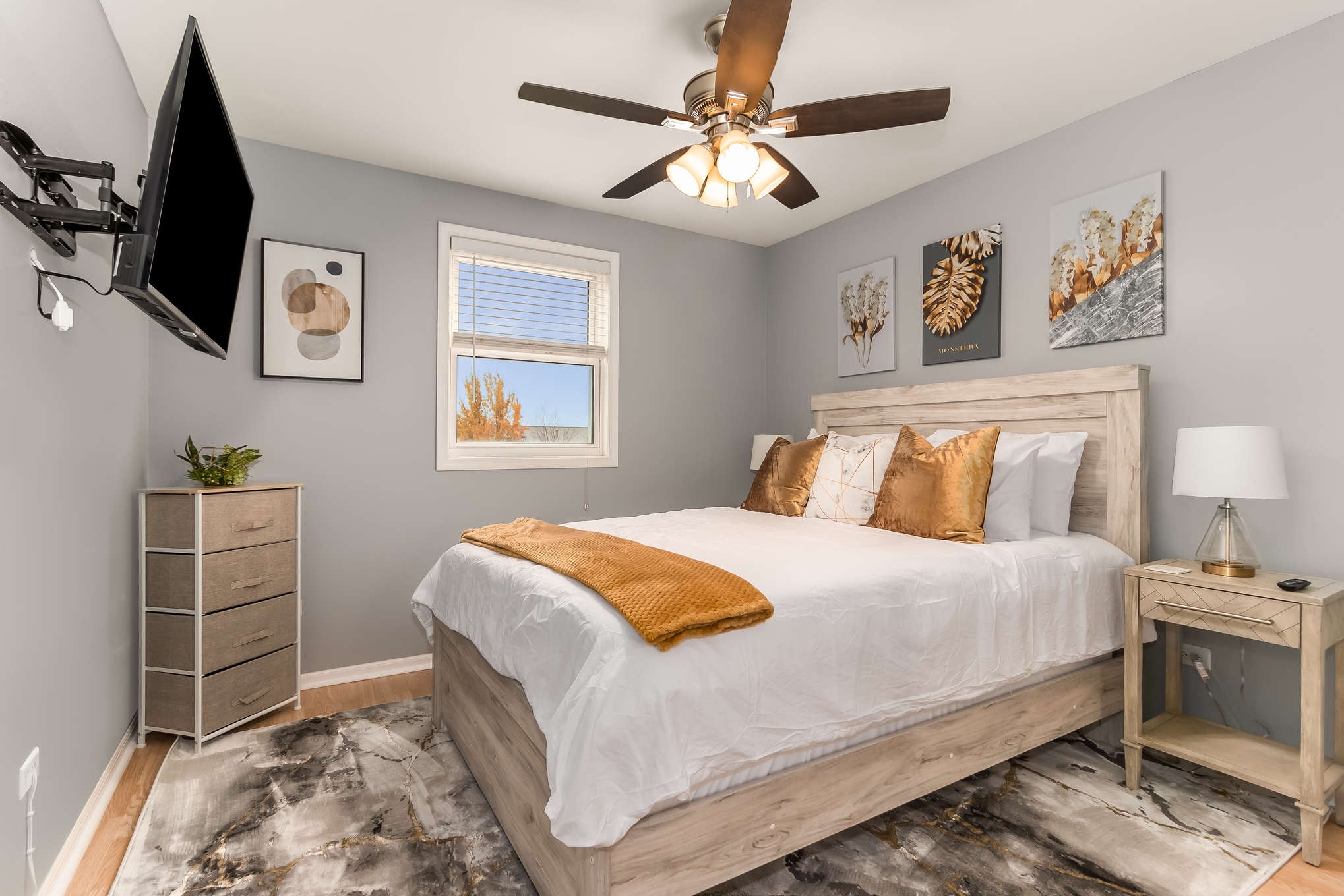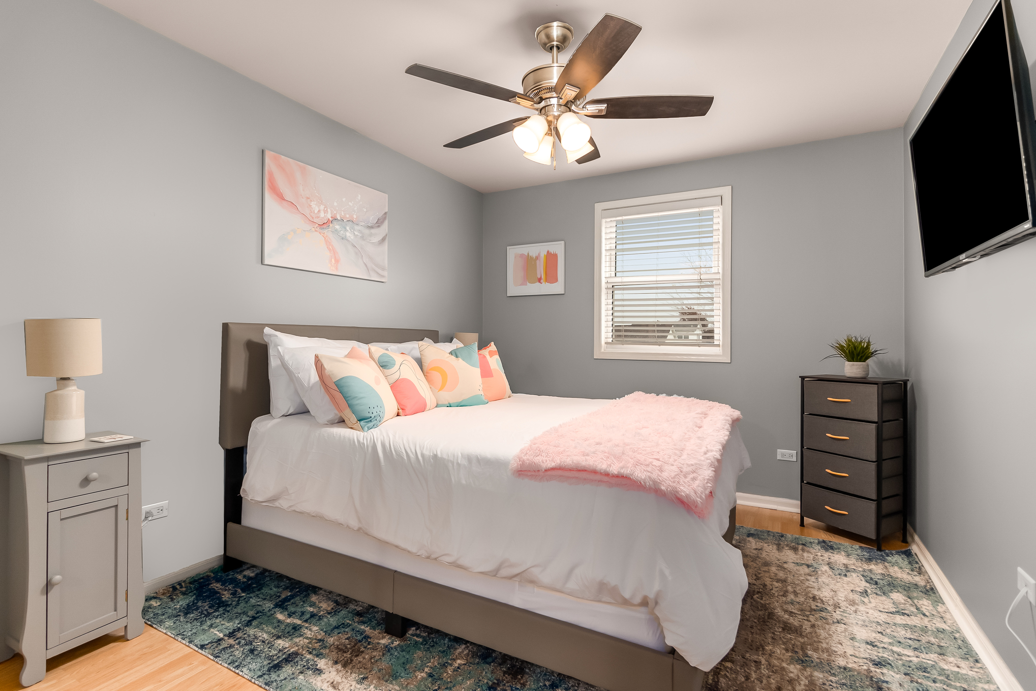 This 3,000 split level-style home is located in Aurora IL, a beautiful western suburb of Chicago! Nestled in a quiet, family-friendly neighborhood, this home features 5 bedrooms and 3 full bathrooms. The master bedroom has a king-size bed and an ensuite bathroom! The remaining 4 bedrooms all have queen-size beds! The home also has space for the 1 air mattress on-site (total of 6 beds). The kitchen features stainless steel appliances and plenty of cookware for an enjoyable meantime experience!