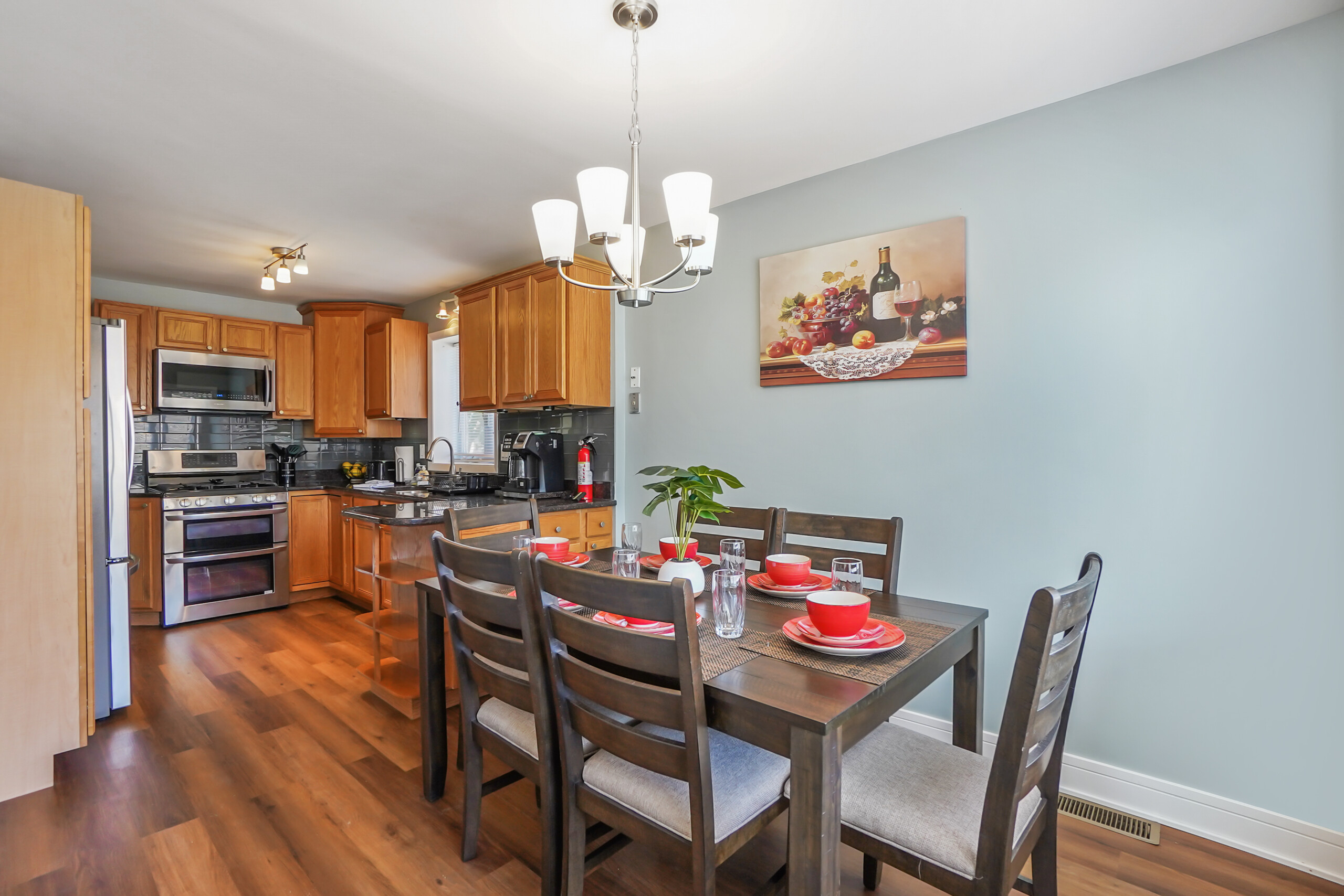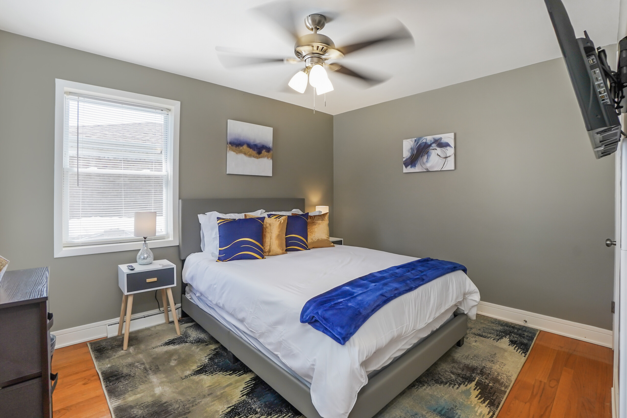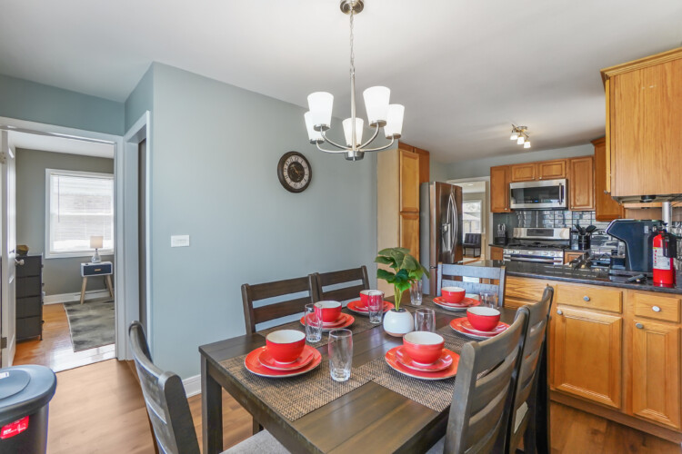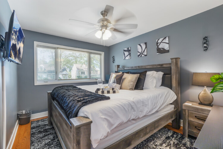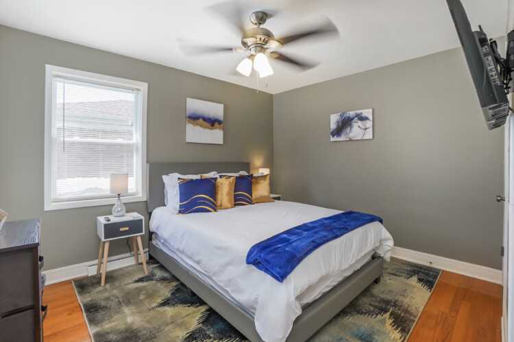 2000 SF renovated unit is 10 minutes away from O’hare Airport & 18 min to downtown Chicago! This property has 5 bedrooms, & 2 bathrooms. Master bedroom has a KING, 3 bedrooms have a Queen, and 1 bedroom has 2 twin beds. The living room has room for 1 air mattress (Total of 7 beds). Plenty of Kitchen utensils, all you need in a kitchen, including cooking spices and oils! Children friendly & lots of technology!