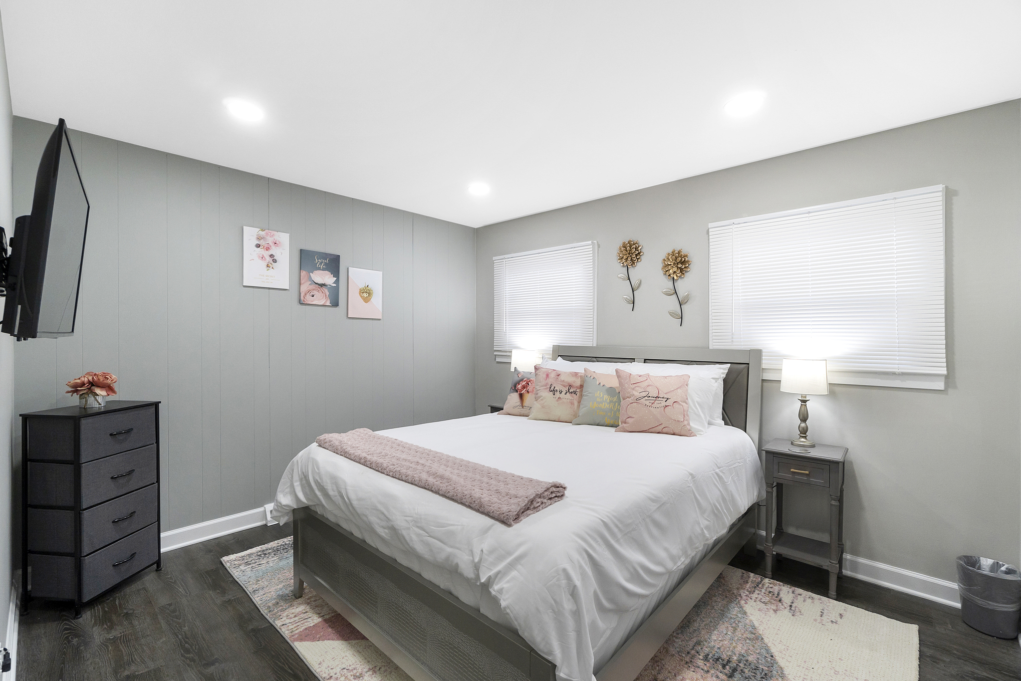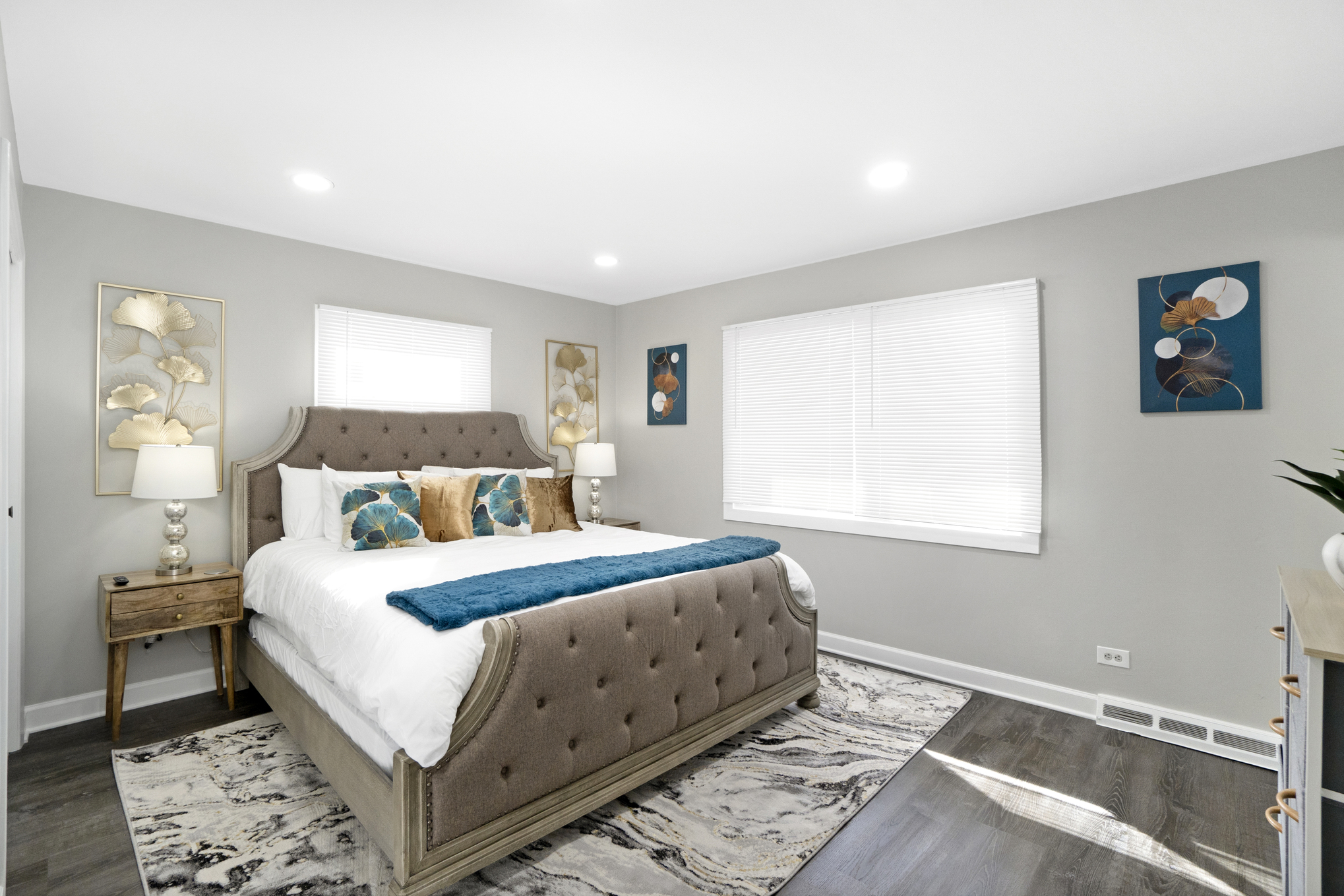 1800 SF unit is 5 min away from O’hare, and 12 min from downtown Schaumburg, which is like a bustling mini Chicago, including plenty of bars/restaurants! This property has 4 bedrooms, 2 full bathroom. Master suite has a KING, 3 rooms have Queen beds. The home has space for the 1 air mattress on-site. (Total of 5 beds). Plenty of Kitchen utensils, including cooking spices and oils! Children friendly & lots of technology!