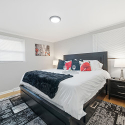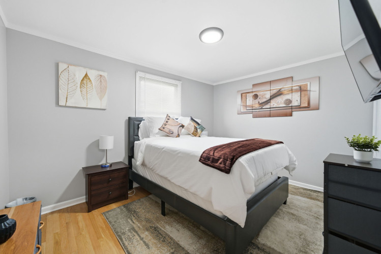 This 1,400 SF ranch-style home is located in Crestwood, IL, a beautiful southwest suburb of Chicago! Nestled in a quiet, family-friendly neighborhood, this home features 3 bedrooms and 2 full bathrooms. The master bedroom has a king-size bed and an ensuite bathroom! The second and third bedrooms both have queen-size beds! The home also has space for the 1 air mattress on-site (total of 4 beds). The kitchen features stainless steel appliances and plenty of cookware for an enjoyable meantime experience!