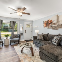 Updated home, with 2 car garage parking, 60-foot driveway, and public parking. The home was renovated in 2020, so it has updated carpet & flooring. Kitchen and bathrooms won’t disappoint! Comfortable sectional! Cards and game options available. Spacious backyard, with fence!