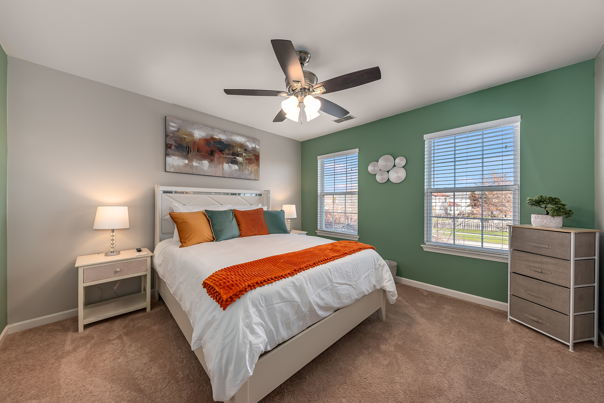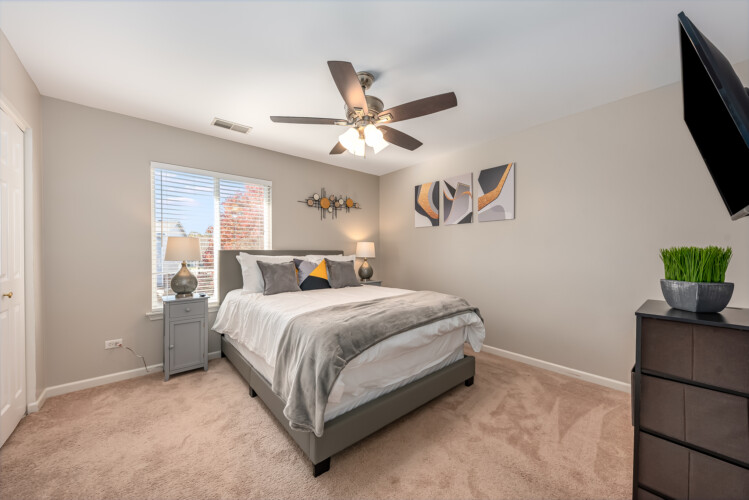 2000 SF unit is 10-12 min away from downtown Naperville, which is like a bustling mini Chicago, including a beach and plenty of bars/restaurants! This property has 4 bedrooms, 2 full bathroom, 1 half bathroom. Master suite has a KING, and the other 3 w/Queen beds. The home has space for the 1 air mattress on-site. (Total of 5 beds). Plenty of Kitchen utensils, including cooking spices and oils! Children friendly & lots of technology!