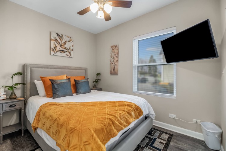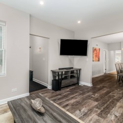 2340 SF renovated home is only 3 miles away from Midway airport, and approx. 16 min from downtown Chicago! This property has 5 bedrooms, & 2 full bathrooms. Master bedroom & lower level bedroom BOTH HAVE A KING, 2 bedrooms have a Queen, and 1 bedroom has TWO twin beds. The living room has a sleeper couch and we have 1 air mattress (Total of 8 beds). Plenty of Kitchen utensils, including cooking spices and oils! Children friendly & lots of technology!
