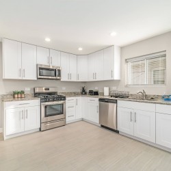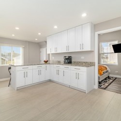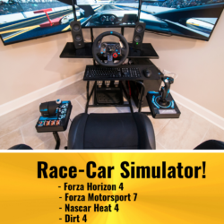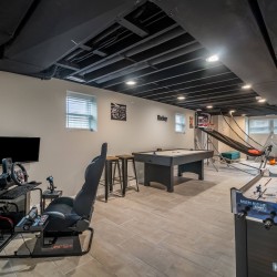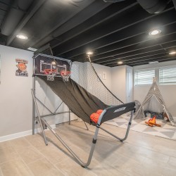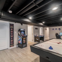 Updated home, with garage and street parking. The home was renovated in 2019, so it presents a modern kitchen with all updated flooring and granite counter-tops. Arcade Room features 5 distinct gaming options: Race car & pilot simulator with real chair & 3 monitors, 2 player electronic basketball hoops, arcade cabinet with 2,000 classic games loaded, air hockey/ping pong table top, and stick hockey! Unit also has a custom child’s play area! Cards and board game options available!