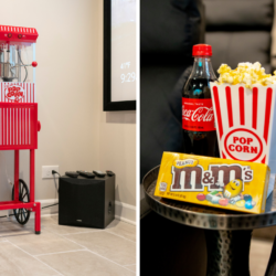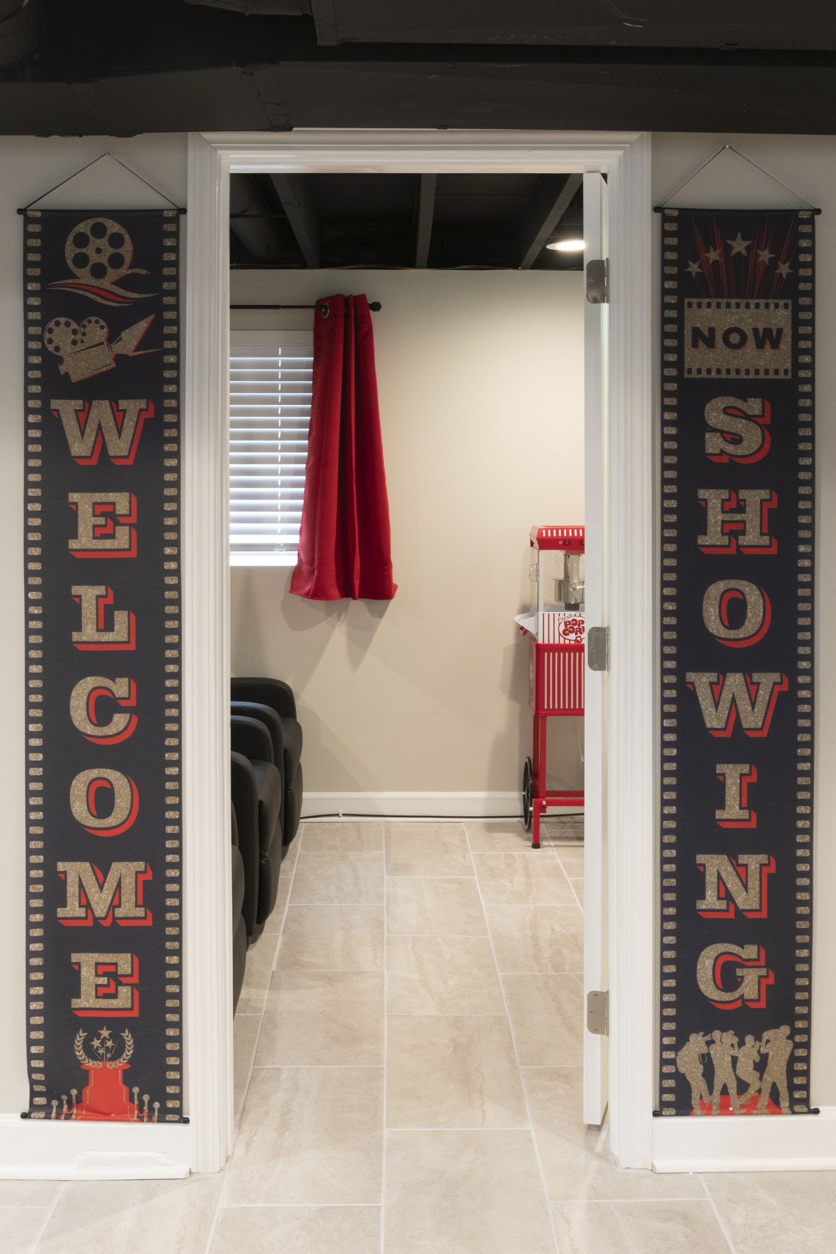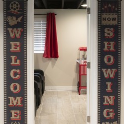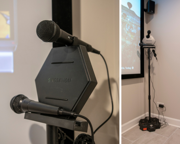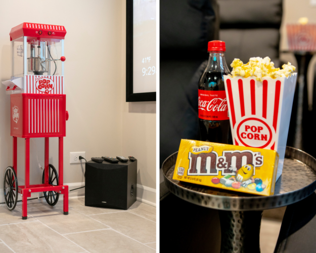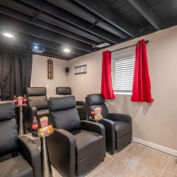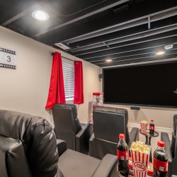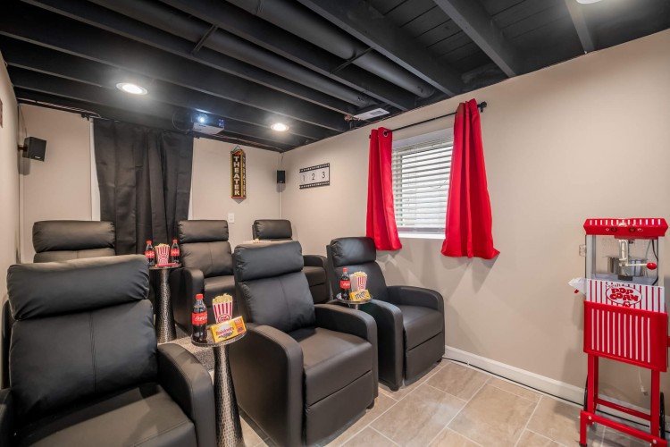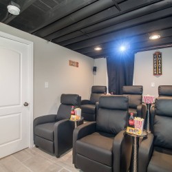 – Home Theater with 100″ Screen, projector & recliners