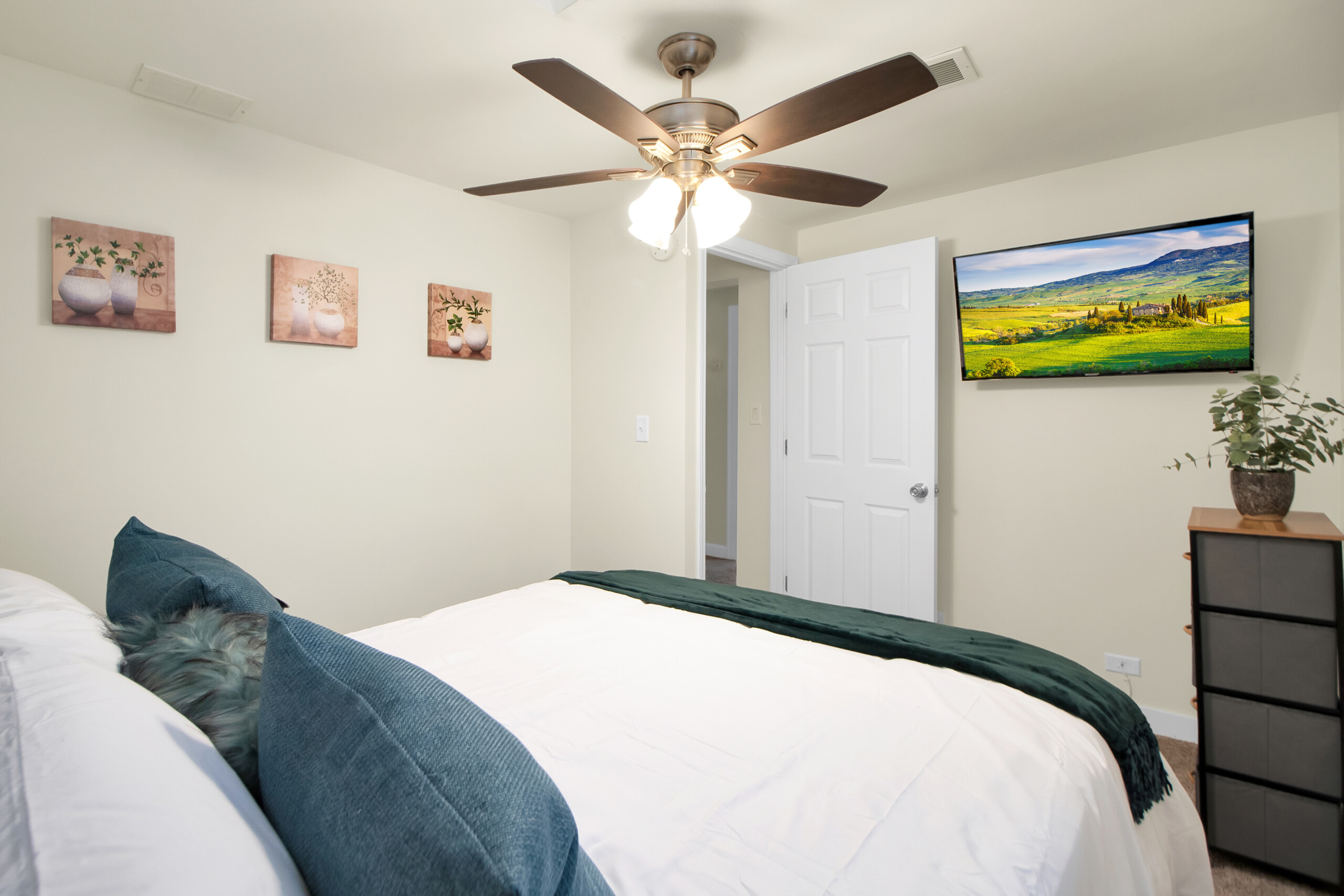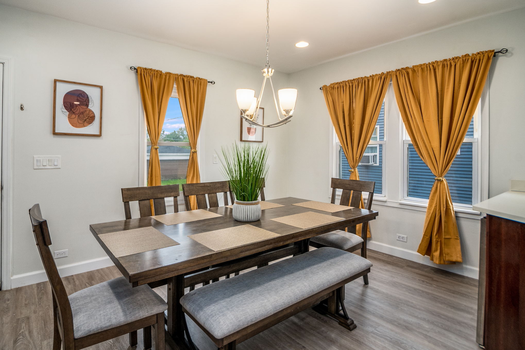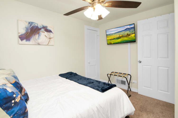 2100 SF renovated home is located between O’hare airport, and Oakbrook/Naperville! Get to the hottest suburbs within 15 min from this home. This property has 5 bedrooms, & 2.5 bathrooms. Master bedroom has a KING, 2 bedrooms have a Queen, and 2 Full size beds in basement. The living room has 1 air mattress (Total of 6 beds). Plenty of Kitchen utensils, including cooking spices and oils! Children friendly & lots of technology!