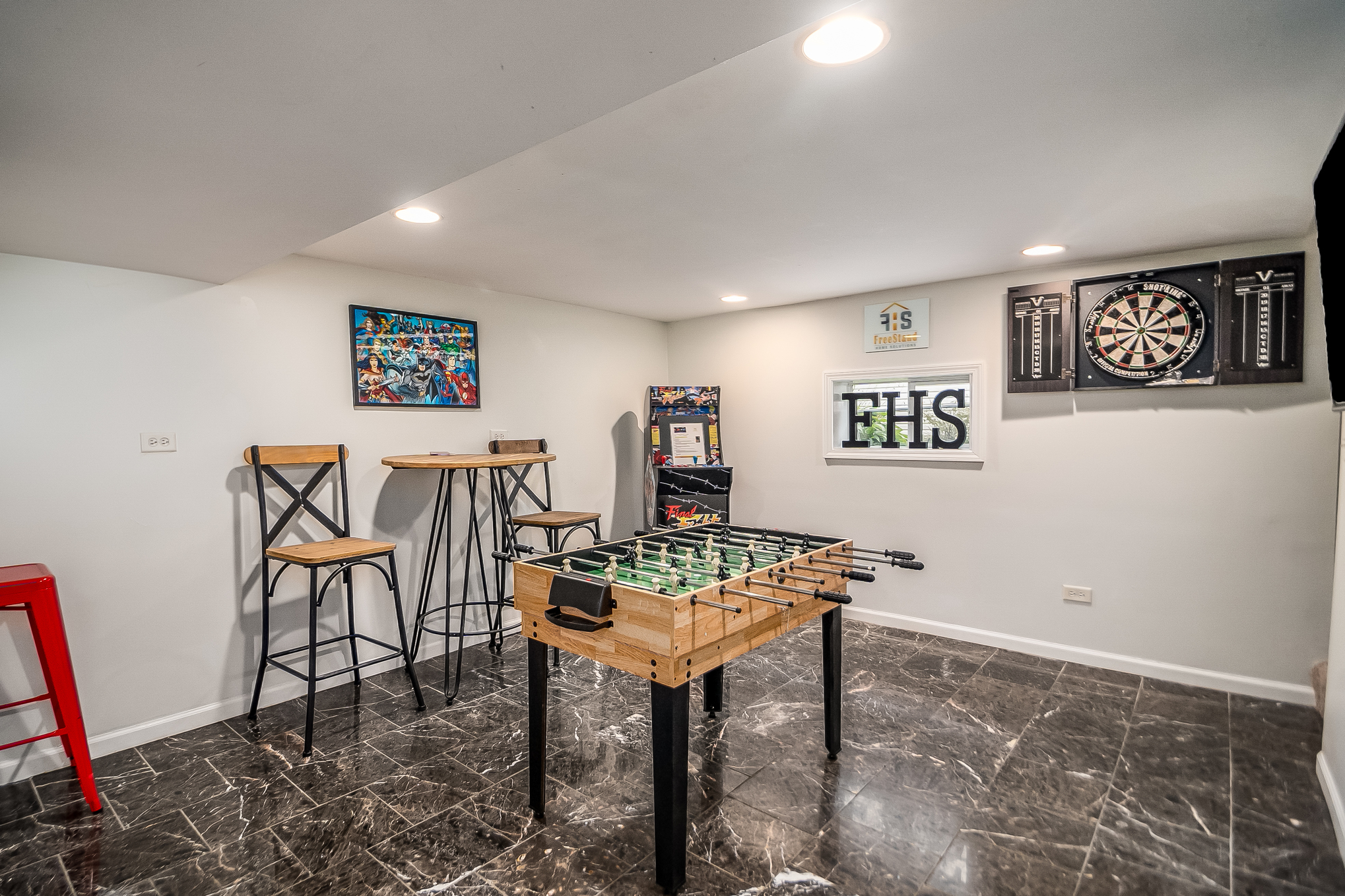 Updated home, with garage and 60+ foot driveway. The home was renovated in 2020, so it presents a modern kitchen with all updated flooring and granite countertops. Arcade Room features Air Hockey Table, arcade cabinet with 2,000 classic games loaded, and darts! Cards and board game options available!