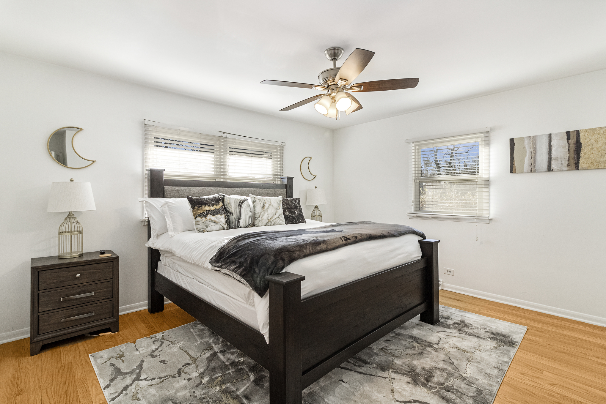 1600 SF renovated unit is central to downtown Wheaton, College of DuPage, Wheaton College, & Wheaton North High School. This property has 4 bedrooms, & 2 full bathrooms. Master suite has a King bedroom, the other 3 bedrooms have a Queen. This home has 1 air mattress (Total of 5 beds). Plenty of Kitchen utensils, all you need in a kitchen, including cooking spices and oils! Children friendly & lots of technology!