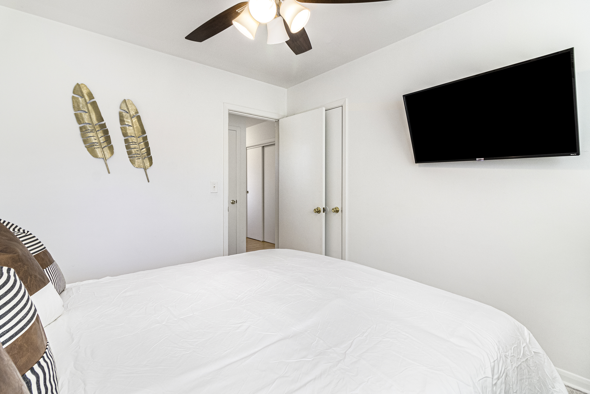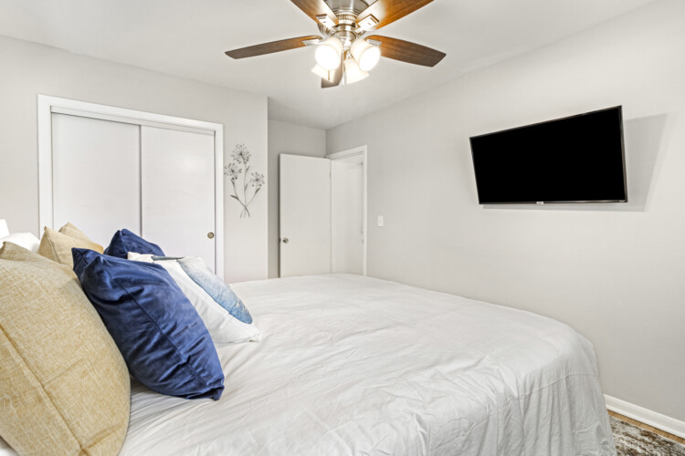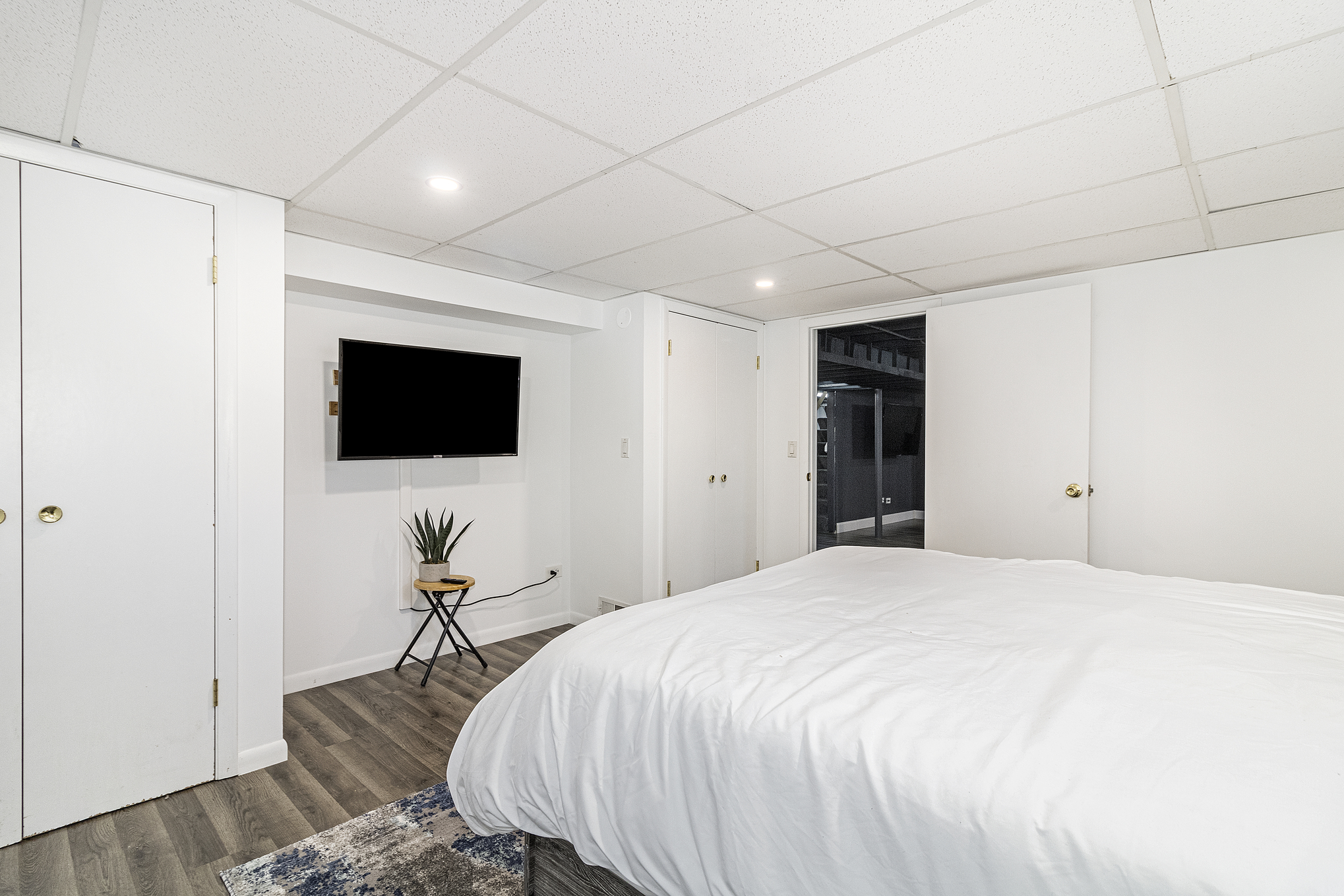 – 55″ TV living area, & basement, 43″ TV’s in bedroom’s